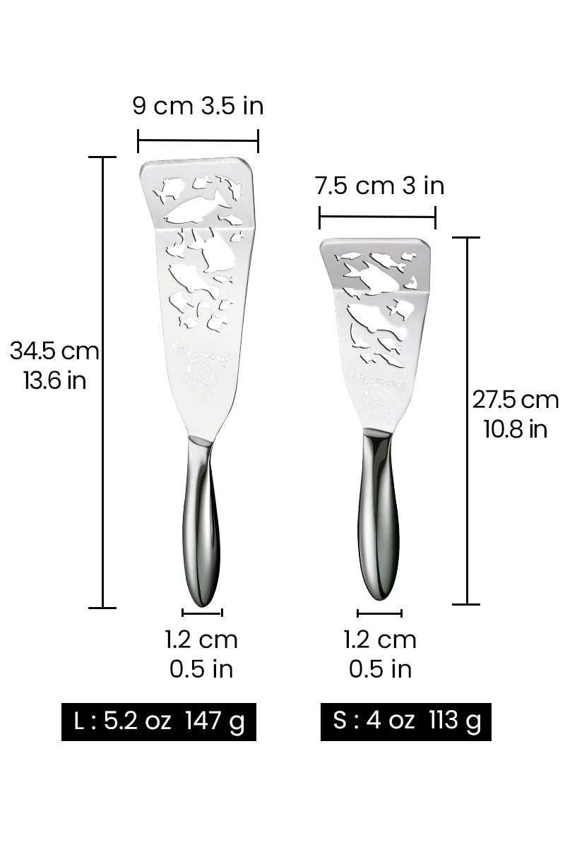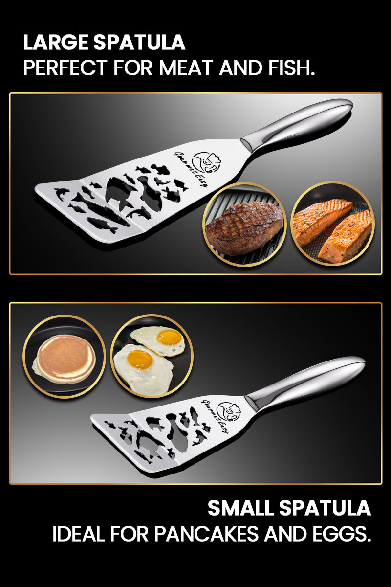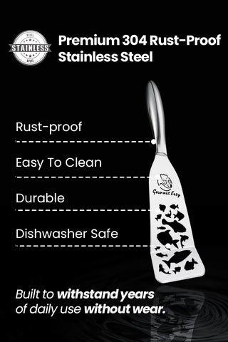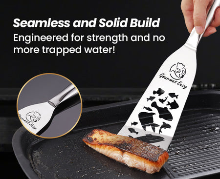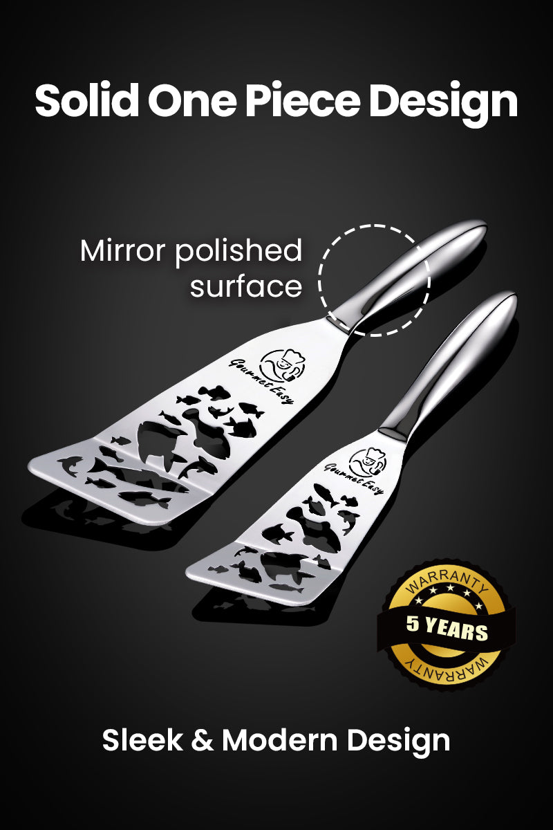 ONE-PIECE STAINLESS STEEL CONSTRUCTION: Made from a single piece of 304 stainless steel, this fish spatula stainless steel resists rust and bending. The seamless design prevents food or grease from sticking—ideal for any metal kitchen utensils set.