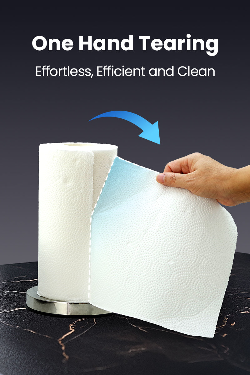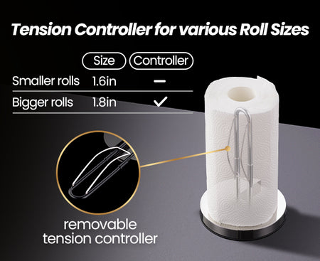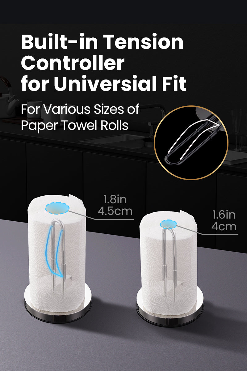 UNIVERSAL FIT: Thanks to the smart tension controller, this paper towel holder grips rolls of all sizes firmly, preventing unraveling and making one-hand tearing effortless..