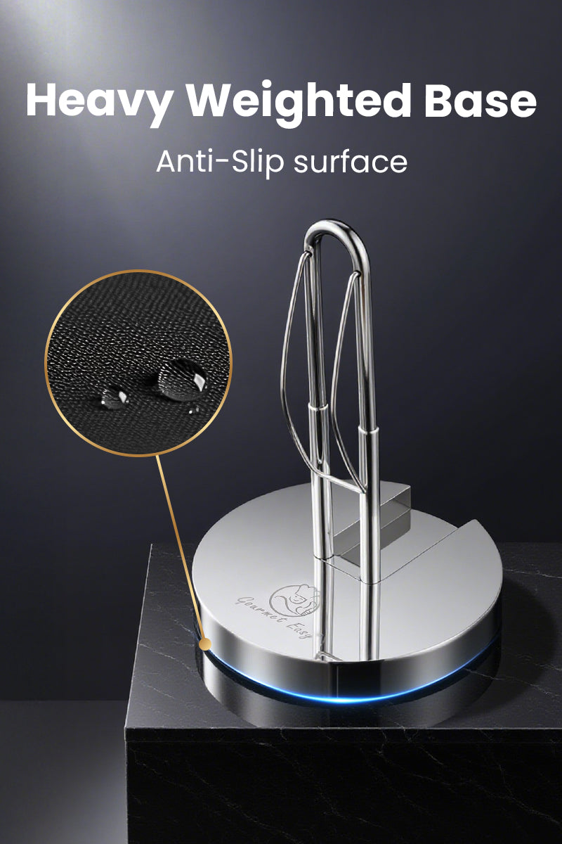 SINGLE HAND TEAR: Cooking with one hand busy? This paper towel holder stays put with its weighted base and non-slip pad—making it ready for one-hand tearing as an apartment essential.
