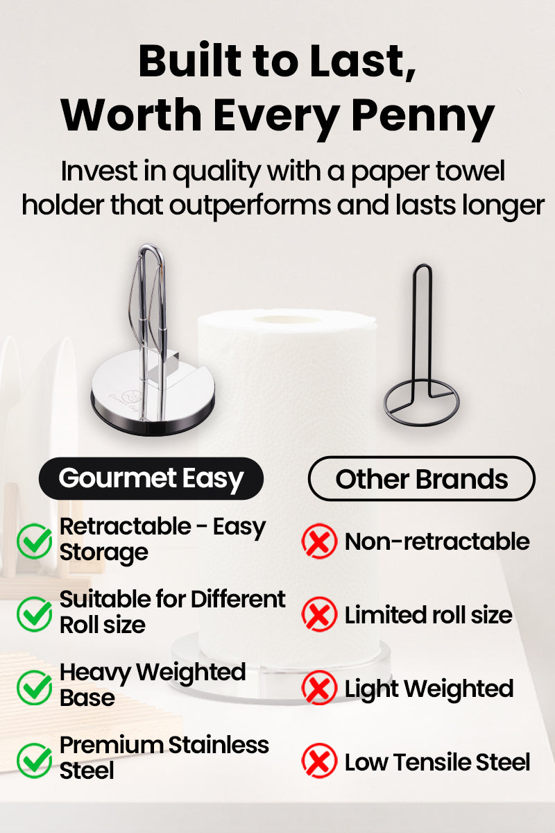 GIFTABLE WITH 5-YEAR WARRANTY: Household essentials for new homes! This elegant paper towel dispenser makes a thoughtful housewarming present and pairs well with kitchen utensils, all backed by a reliable 5-year warranty.