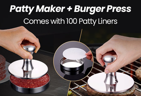COMPLIMENTARY PATTY LINER: Press beef, veggie, or stuffed patties with ease. The included liner prevents sticking, keeps the press clean, and lets you lift out perfectly shaped patties without breaking.